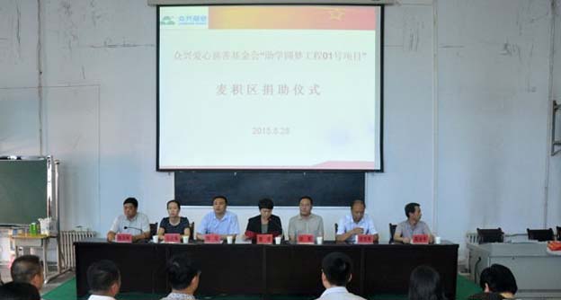 2015年8月28日,由眾興菌業(yè)時(shí)任董事長(zhǎng)陶軍發(fā)起成立的“天水眾興愛(ài)心慈善基金會(huì)”,在天水市二中舉行了“助學(xué)圓夢(mèng)工程01號(hào)項(xiàng)目”首批資助款336000元的發(fā)放儀式。