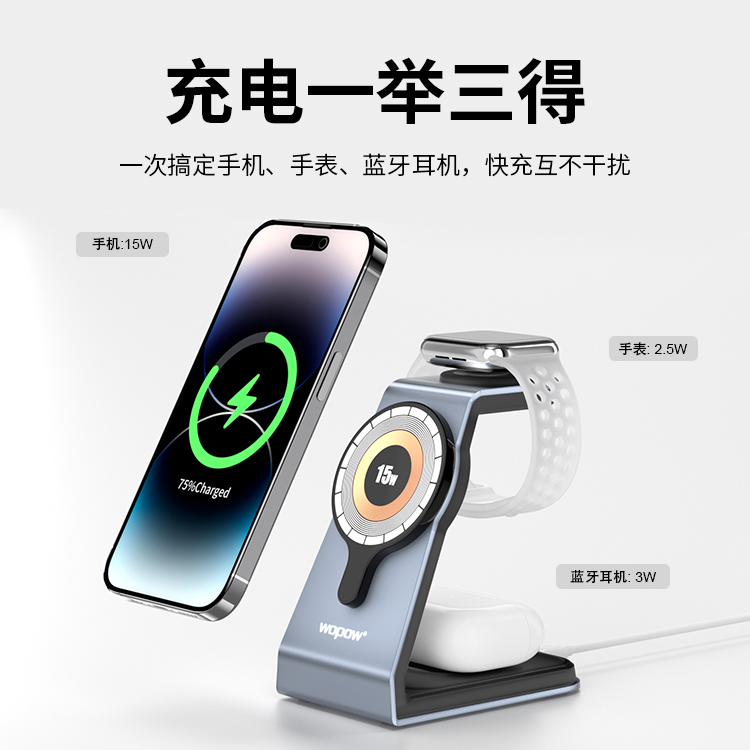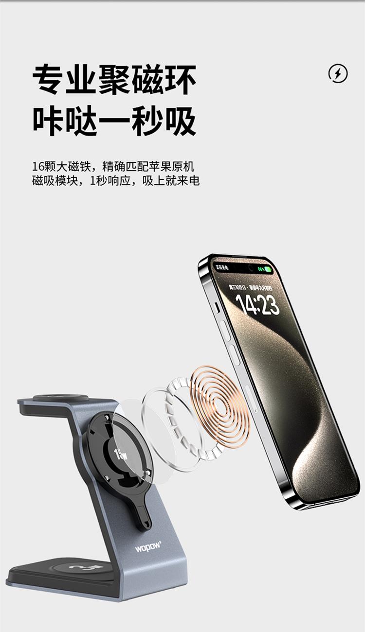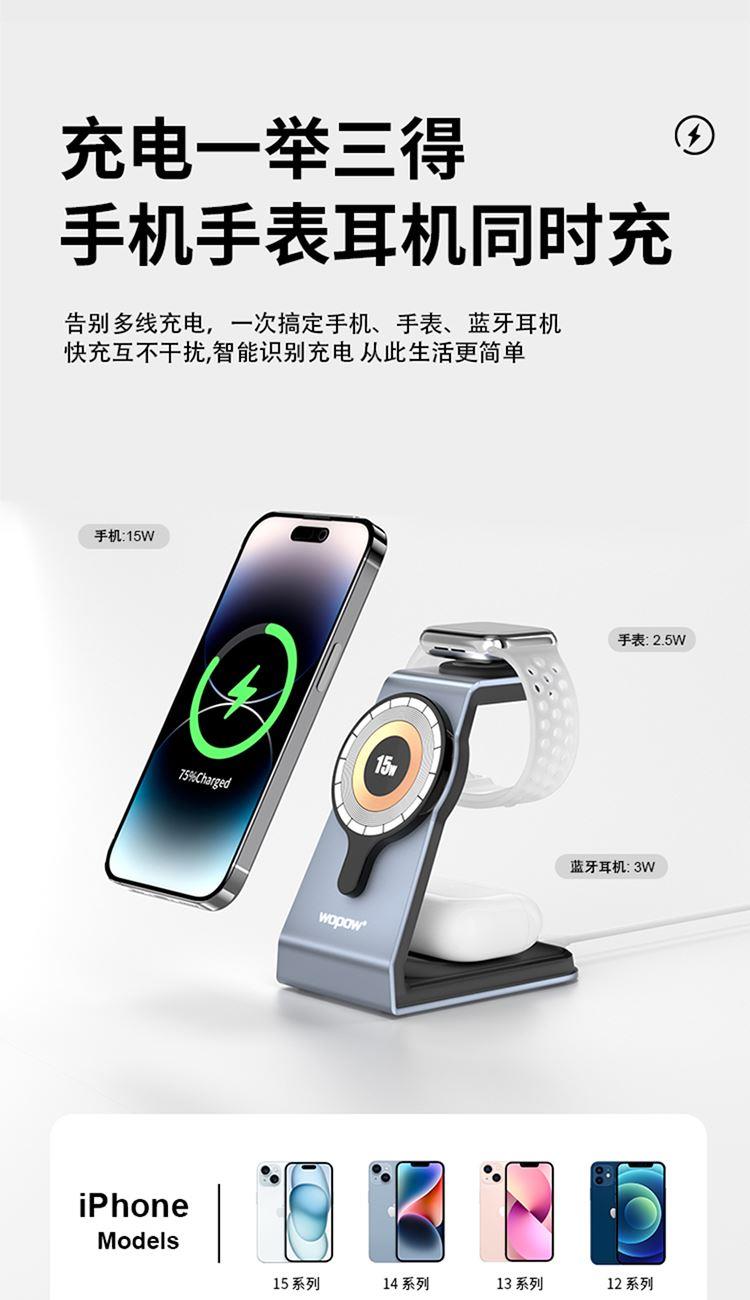 MW02三合一磁吸無線充15W