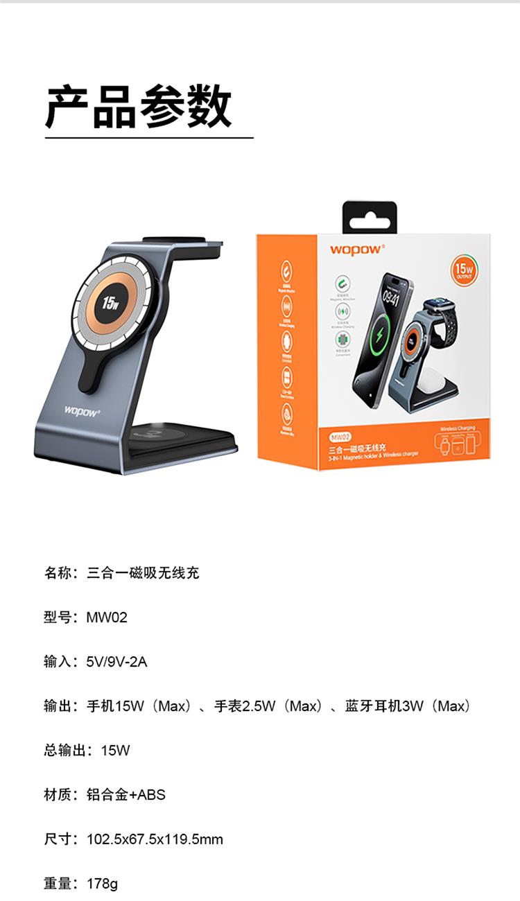 MW02三合一磁吸無線充15W 禮品已成功加入PPT!