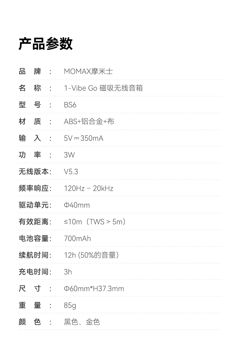 摩米士1-VibeGo磁吸無(wú)線音箱BS6 摩米士1-VibeGo磁吸無(wú)線音箱BS6