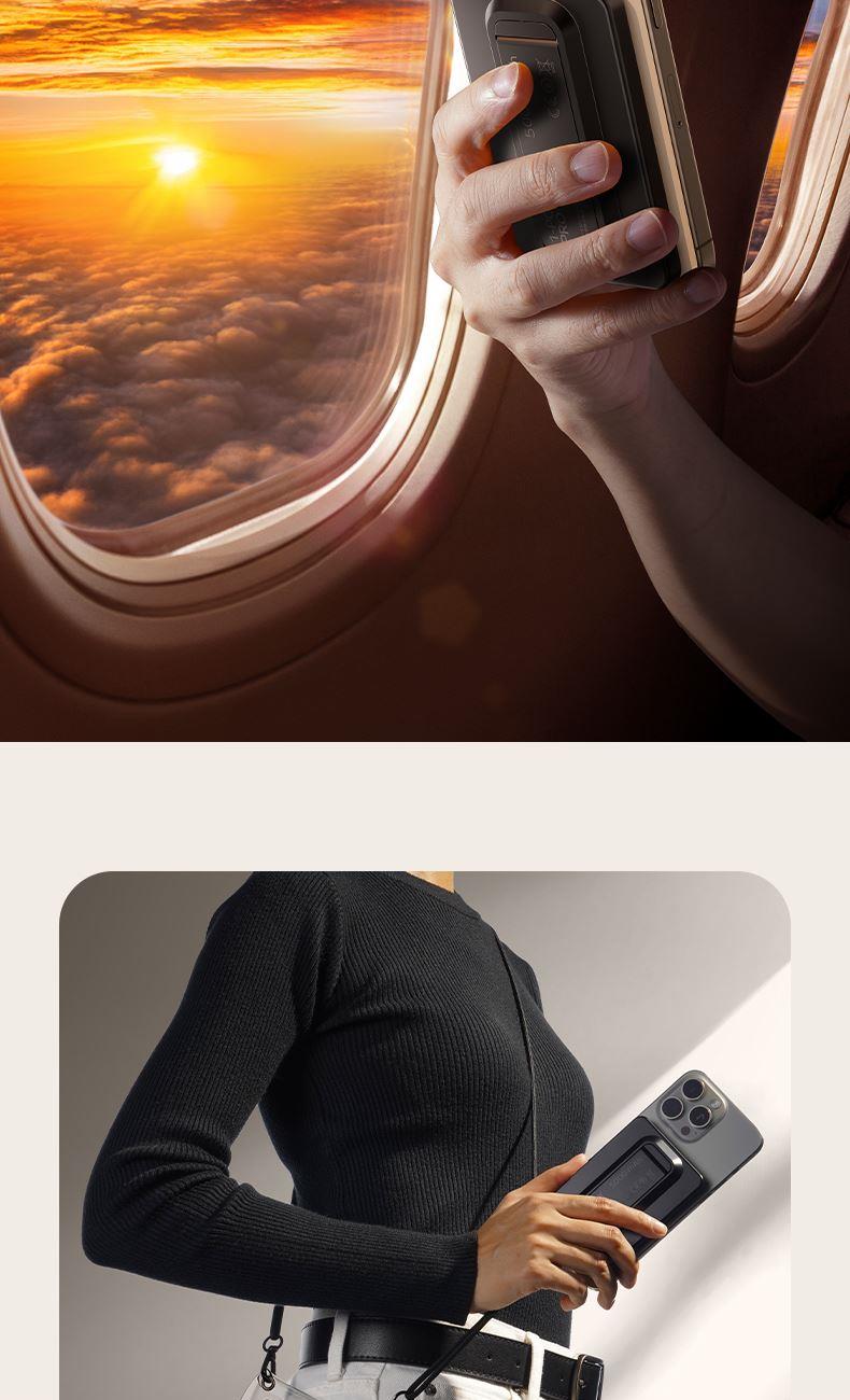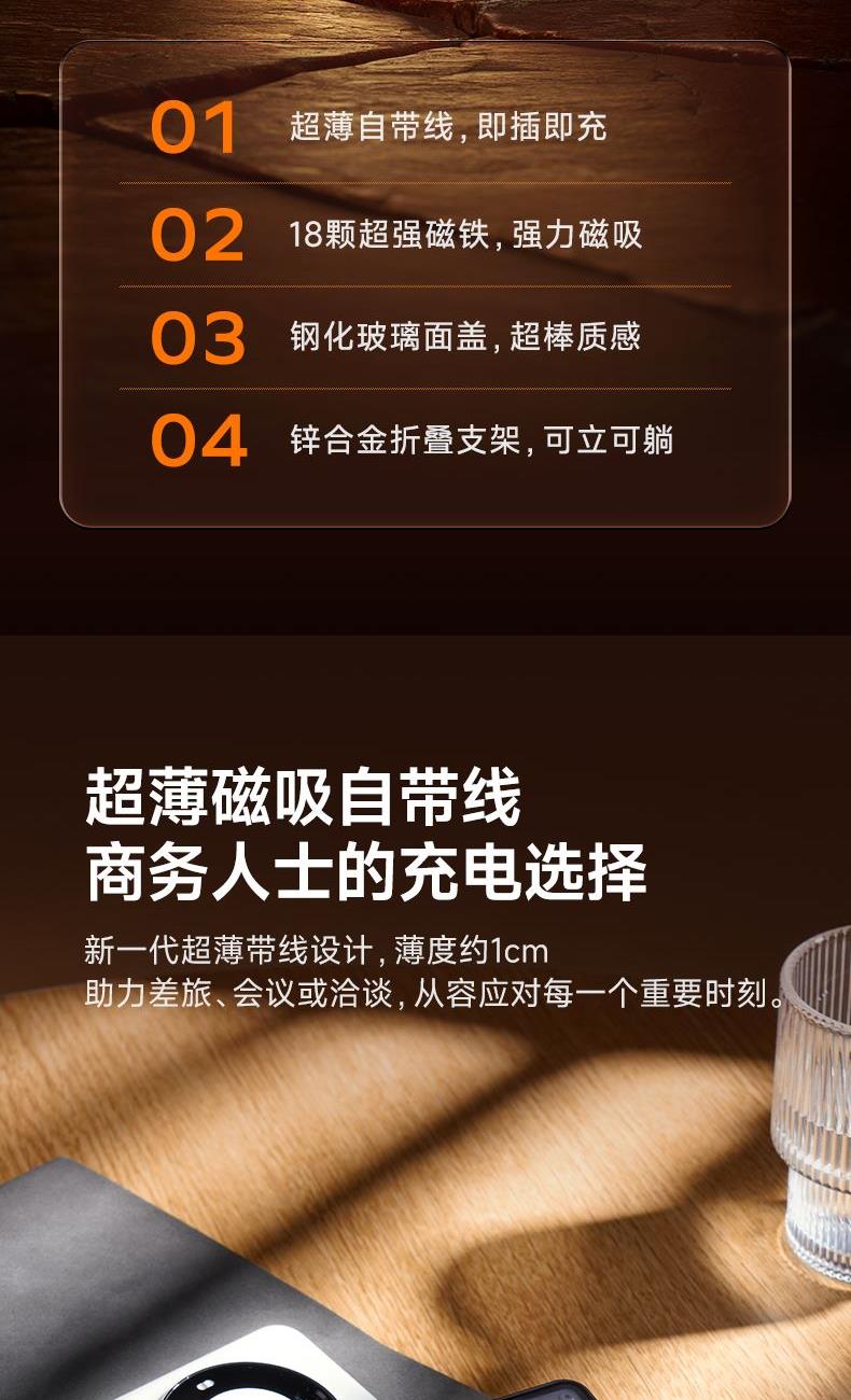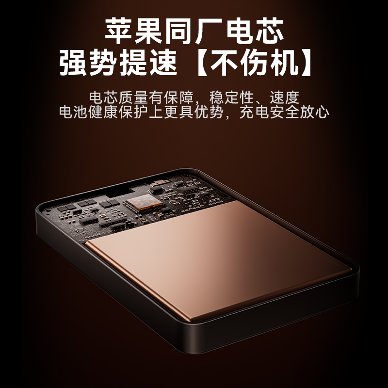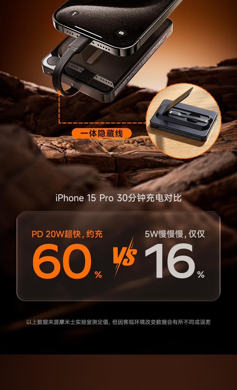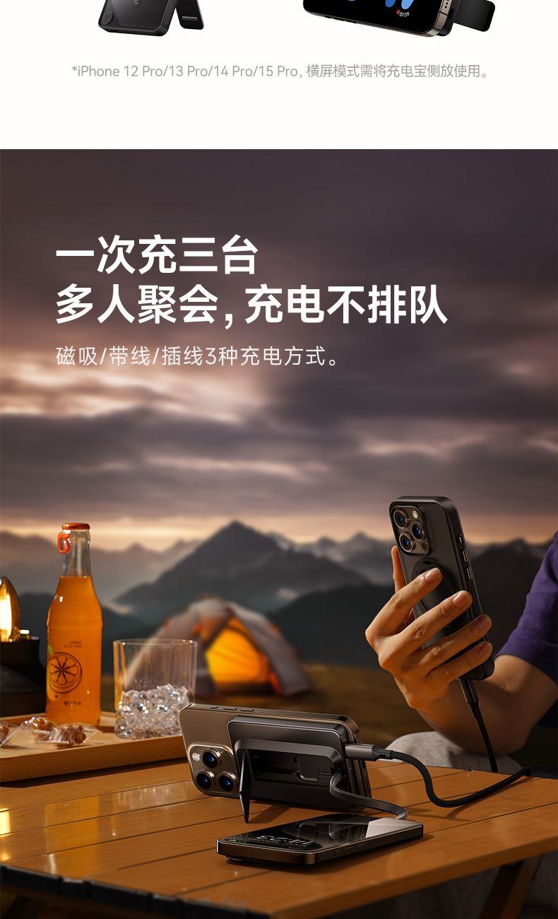 材質(zhì):塑膠+玻璃+鋅合金 電池容量:10000mAh (38.7Wh) 額定容量:5400mAh USB-C線/USB-C口輸入:5V?3A;9V?2A USB-C線/USB-C口輸出:5V?2.4A;9V?2.22A;12V?1.67A 無線充輸出:5W/7.5W/10W/15W 尺寸:104*69*16mm(不含支架) 重量:236g 3C認(rèn)證新國標(biāo),蘋果同廠電芯 10000mAh 有線20W+無線15W Max 隱藏線+鋼化玻璃面板+鋅合金折疊支架